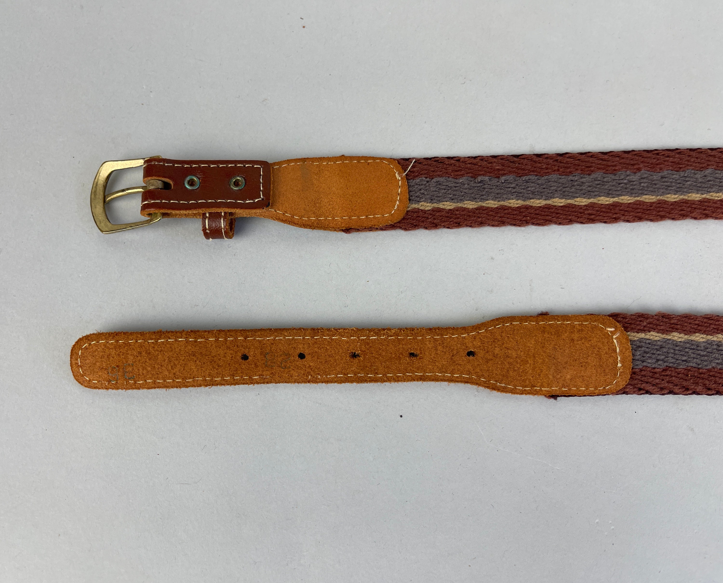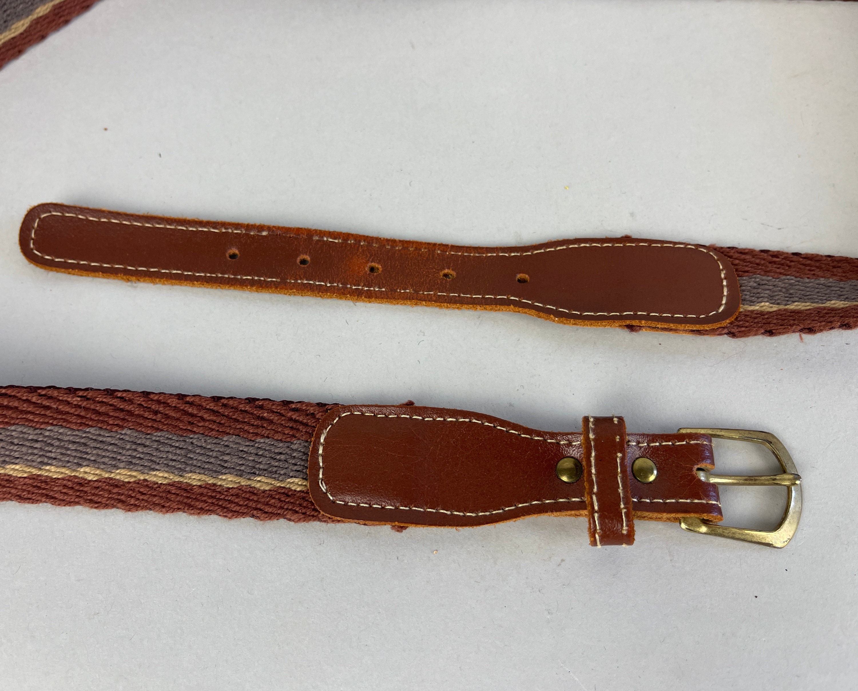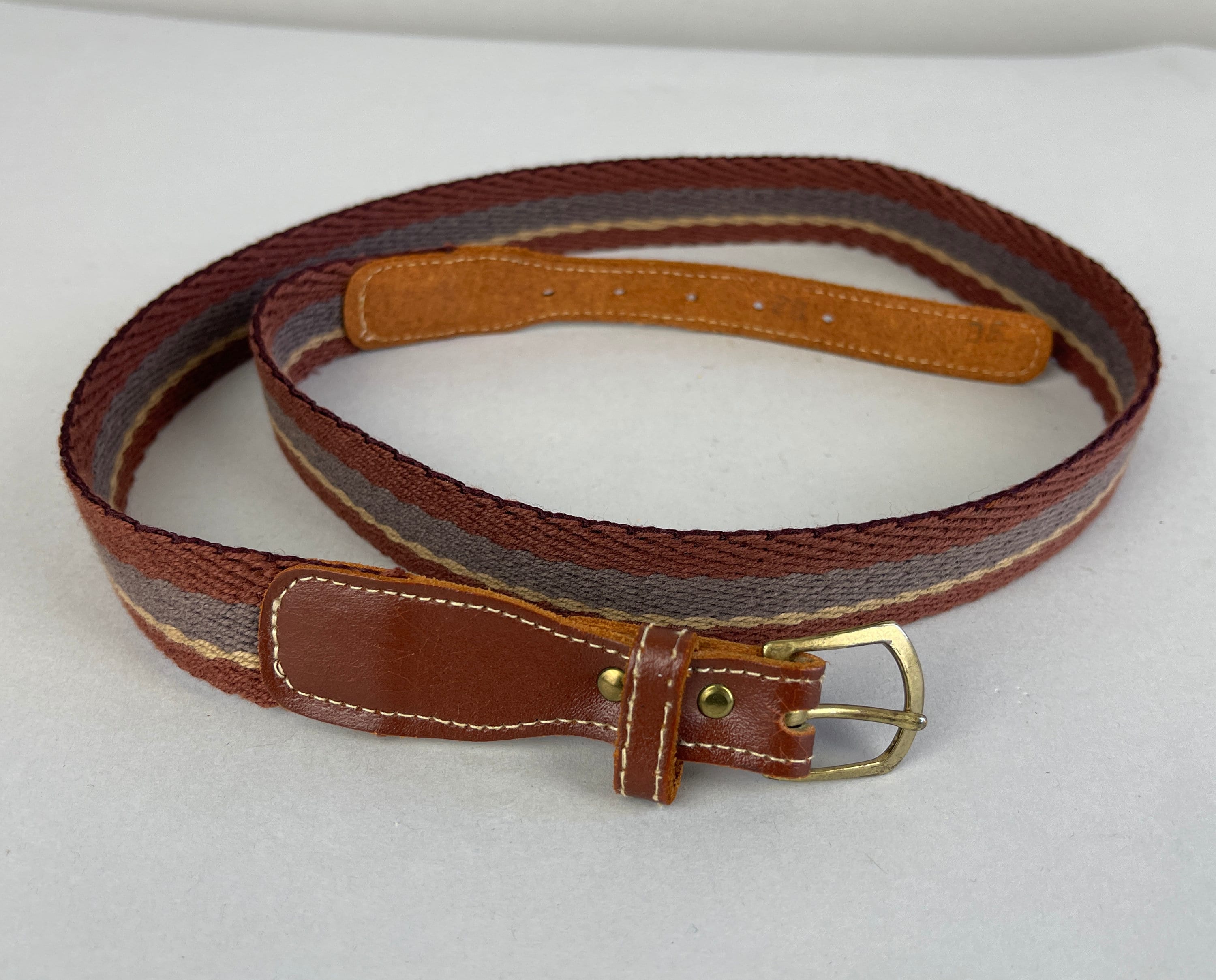 A great way to keep your pants from falling down, this vintage snazzy deep taupe, purple-grey, and beige adjustable woven cotton cording belt will definitely do the trick! This belt is in great vintage condition with no holes, stains, or odors to note!