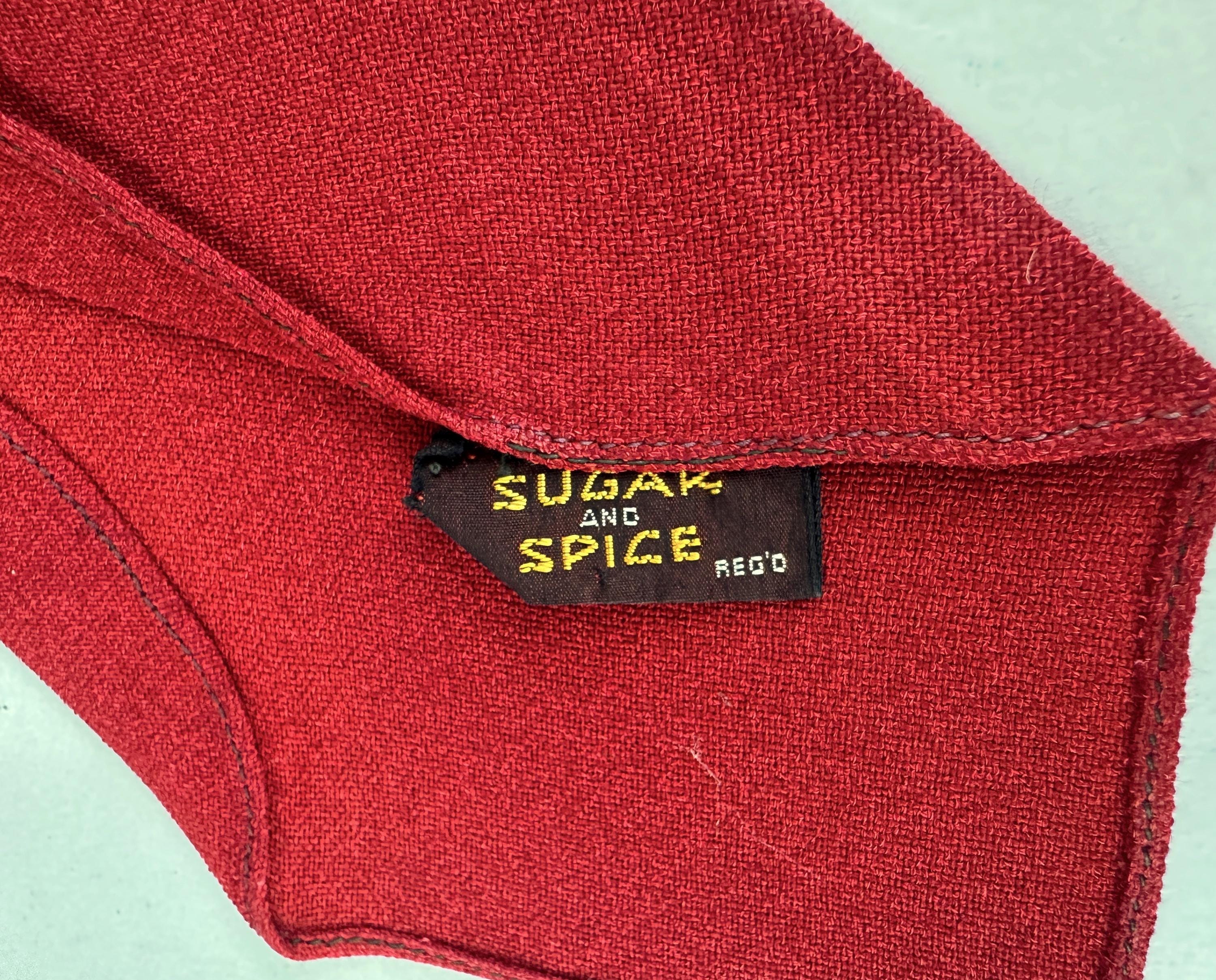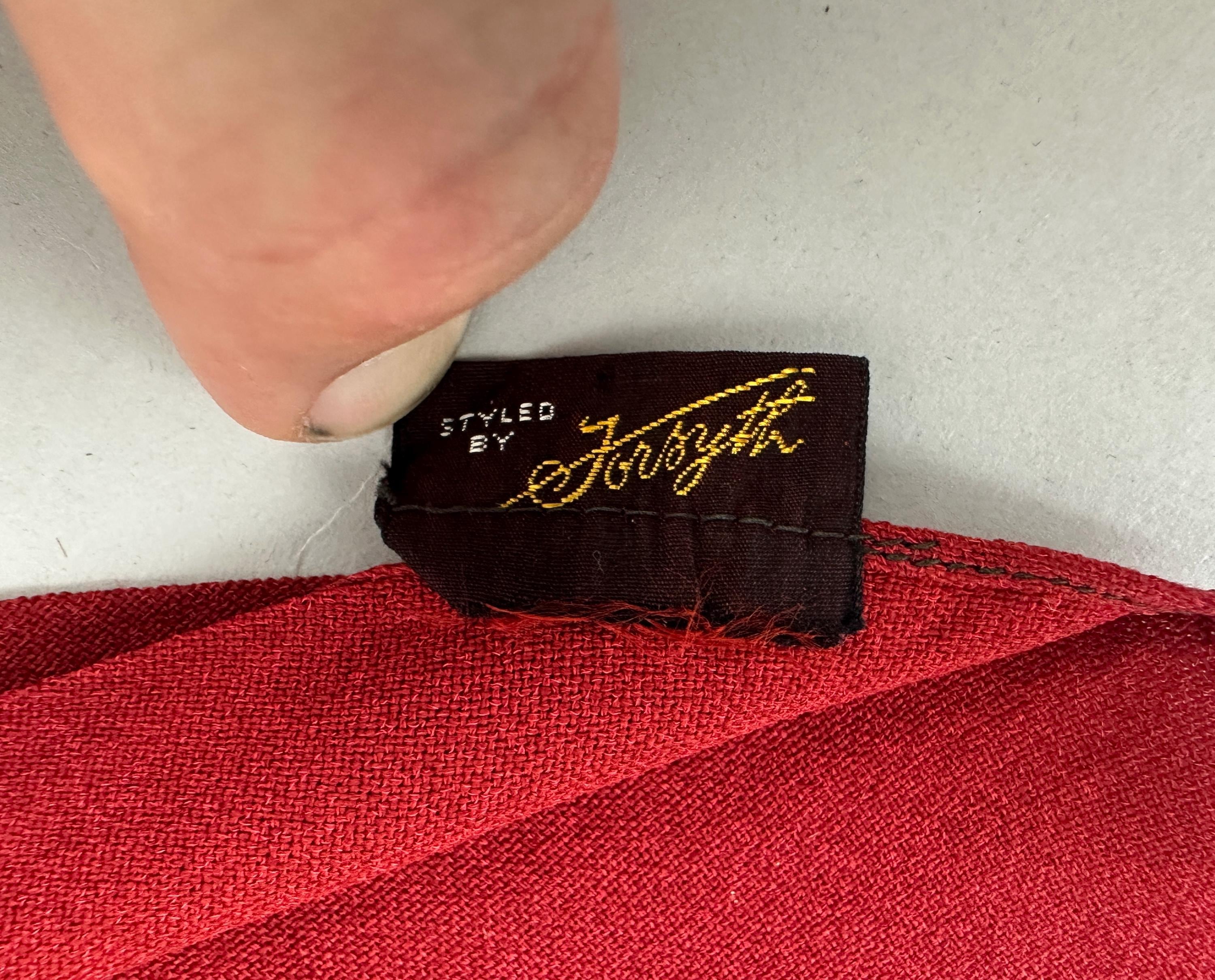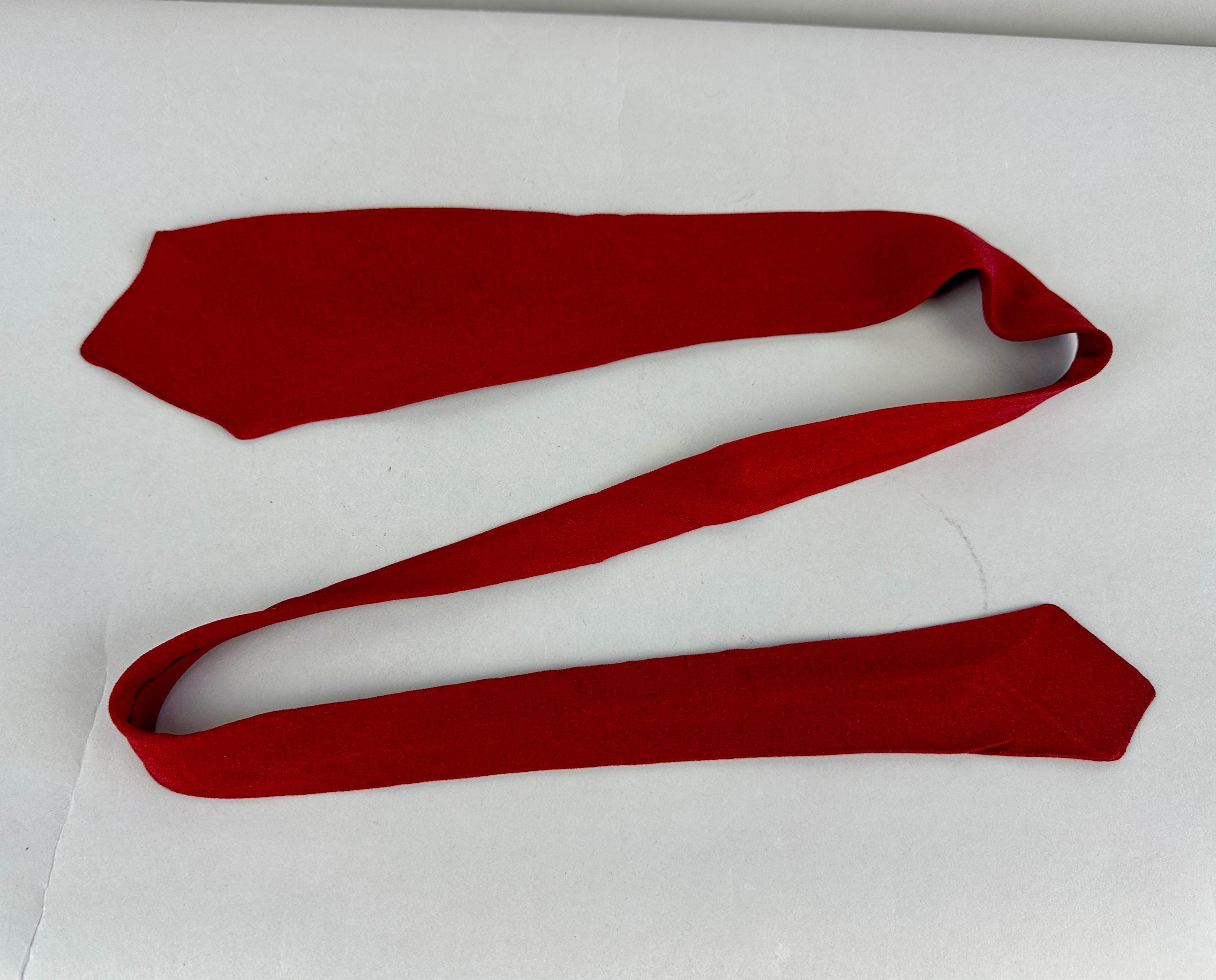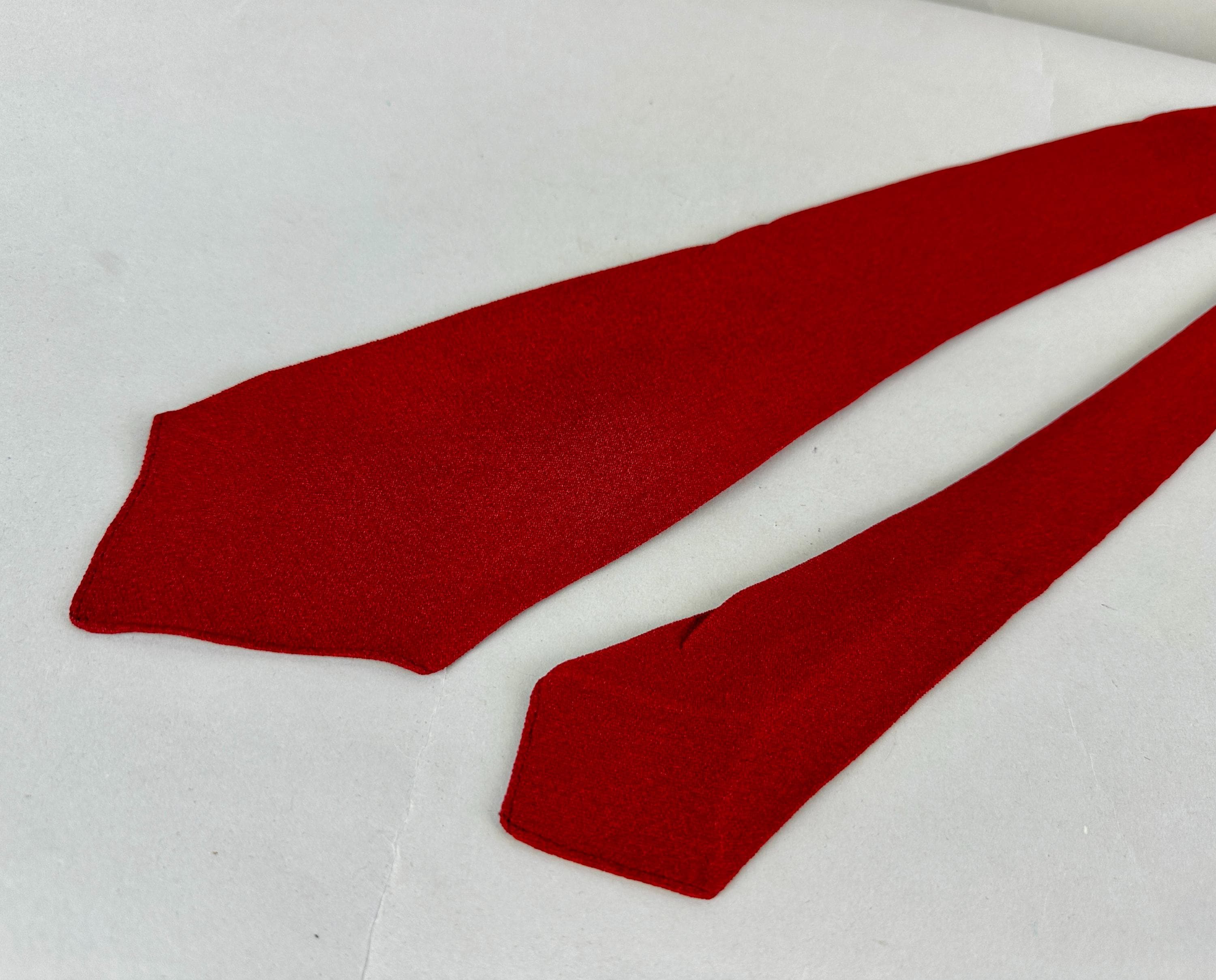 This solid power colour 1930's necktie will have you ready to take on anything! Wool crepe in Alizarin crimson makes a statement with it's understated elegance. Unlined and labeled "Sugar and Spice". Pairs well with a wide variety of Art Deco and Mid-Century suit colors and fabric types. This tie is in great vintage condition with no flaws found!